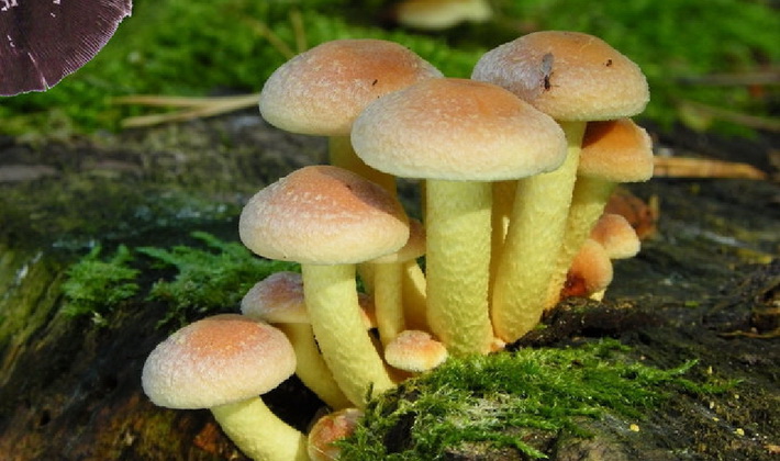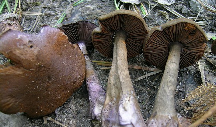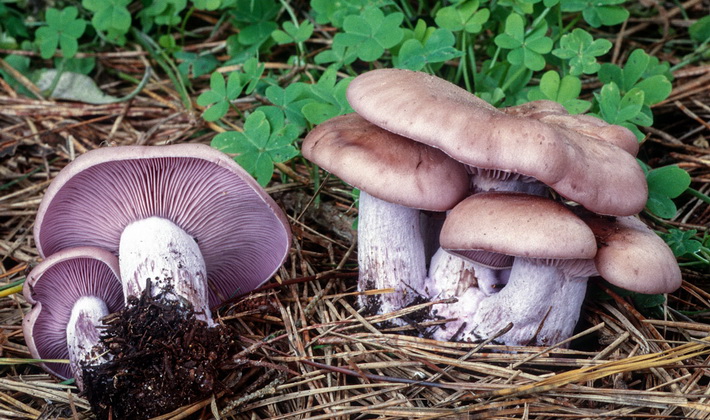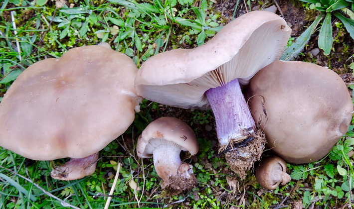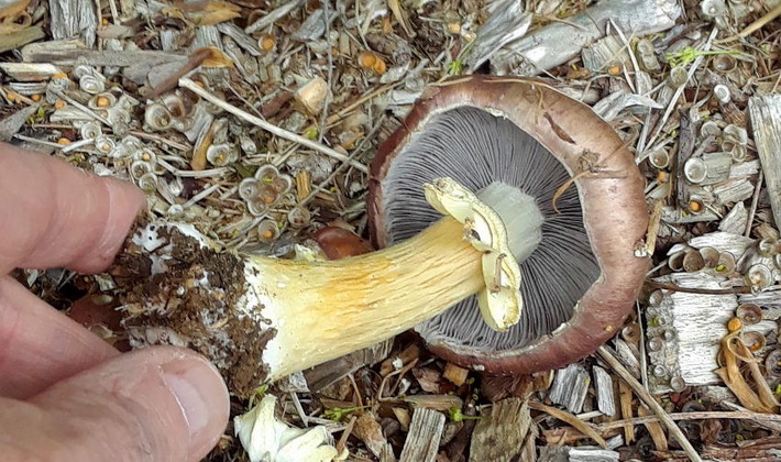 La cuisse des jeunes champignons est violette et ressemble à une paillette.