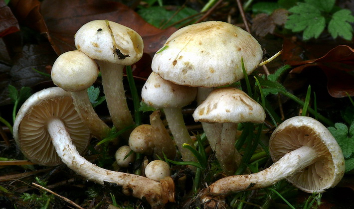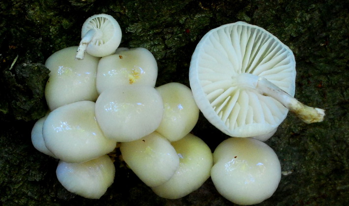 Le chapeau est blanc, gris clair ou brun crème, convexe, avec une surface muqueuse.