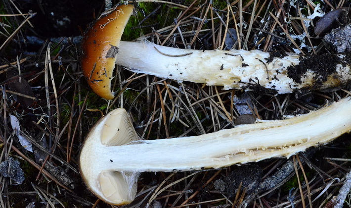 Jambe fibreuse-squameuse, creuse, avec restes annulaires du couvre-lit.