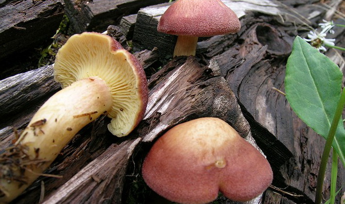 La chair est dense, de couleur jaune foncé, avec une odeur acide de hareng. Les plaques sont duveteuses, avec un abdomen rose, le bord du chapeau avec une bordure aux bords clairs. La surface du chapeau est brun châtain, lisse.