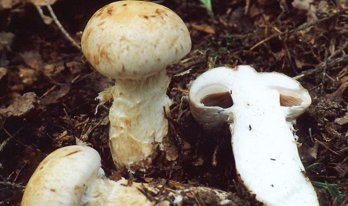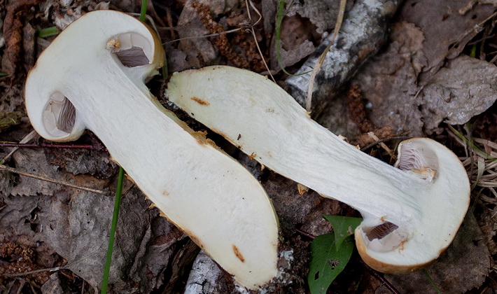 La pulpe est blanchâtre, brunâtre dans la jambe, avec parfois une odeur désagréable.