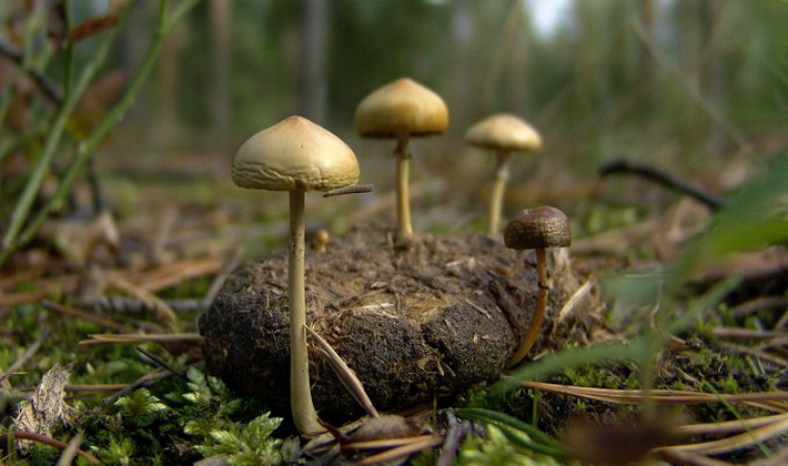 Pousse dans les forêts de conifères (épicéa) et mixtes (avec le bouleau), en lisière de forêt, prés de plaine inondable, parcs, jardins, sur le sol, le bois mort moussu, les débris végétaux, le fumier.