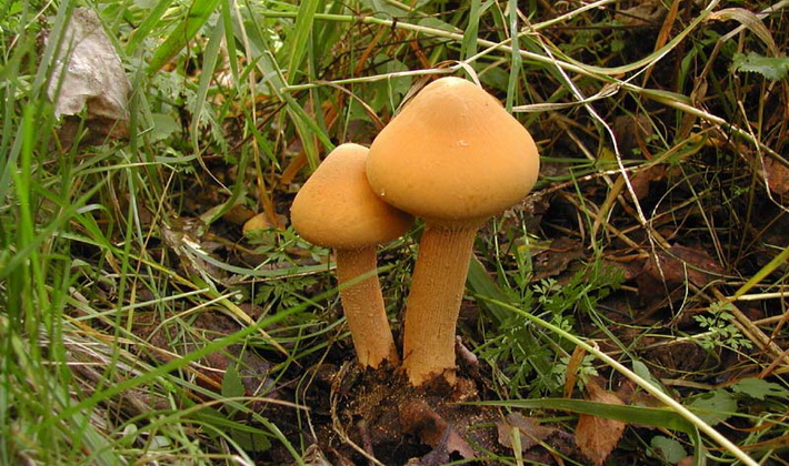 Jambe élargie à la base ou enflée au centre, unicolore avec un chapeau.Le chapeau de champignons mûrs est convexe-prostré, jaune ocre.
