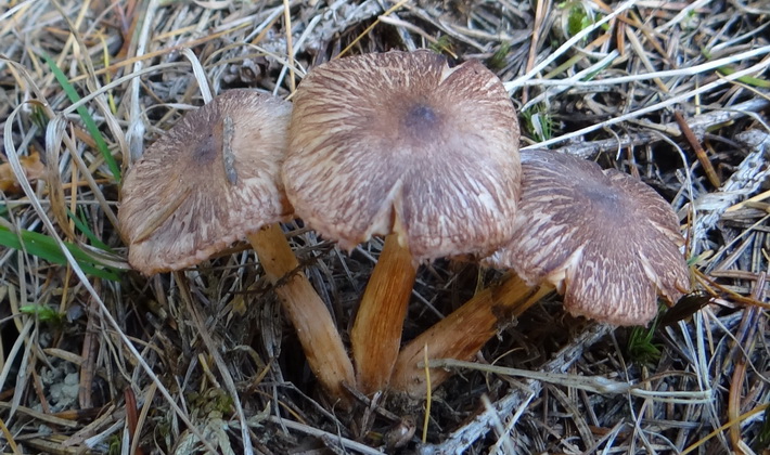 Le chapeau est d'abord conique, puis convexe, tendu, légèrement tubéreux, brun pâle par temps humide, pâlit par temps sec.