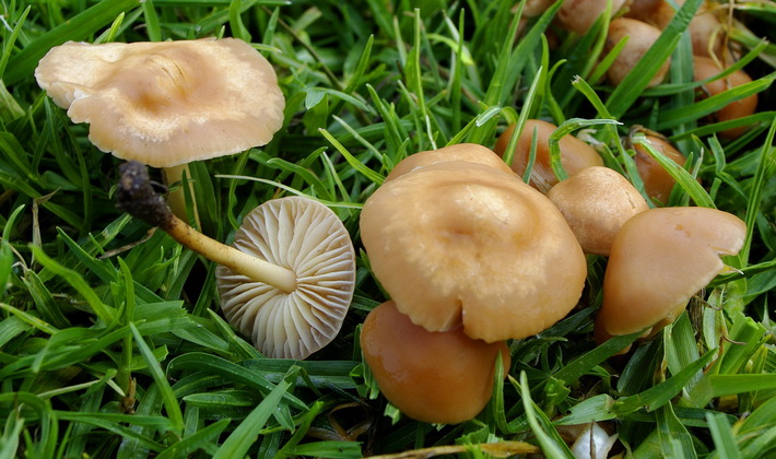 Croissance: dans l'herbe et sur la litière de feuilles en groupes, rangées, cernes