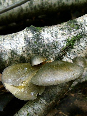 Vers la fin de l'automne, vers le mois de novembre, on trouve des pleurotes verts dans la forêt. Cette espèce n'est pas non plus un double toxique de pleurotes, mais elle ne convient pas à l'alimentation en raison de sa couleur peu attrayante et de son amertume. Il pousse sur des arbres morts de conifères et de feuillus, suspendus dans de grandes colonies à plusieurs étages.