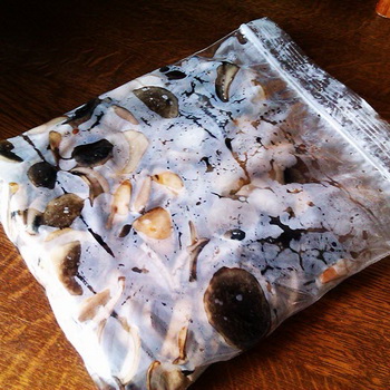 Pour commencer, il convient de porter une attention particulière à la phase préparatoire. Étant donné que l’huile n’est pas fournie pour le traitement thermique avant la congélation, elle doit être soigneusement nettoyée du film glissant et des autres contaminants. Puis rincez soigneusement, mettez une serviette et laissez sécher pendant 20 minutes. Découpez les gros spécimens en morceaux d'environ 3 cm, puis rangez les champignons dans des récipients, fermez bien avec les couvercles et envoyez au congélateur. Un point important: l’huile pouvant facilement absorber les odeurs et les composés chimiques, il n’est donc pas recommandé de les stocker dans le même compartiment que d’autres produits. En suivant ces règles simples, les huiles congelées peuvent être stockées jusqu'à 5 mois.