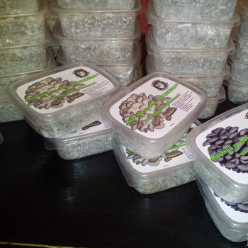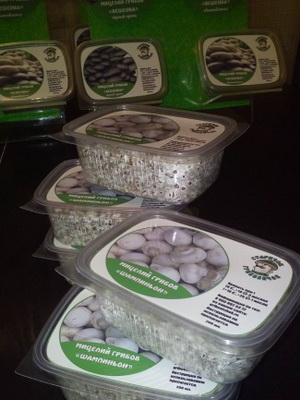 Le mycélium de céréales est vendu dans des sacs en plastique avec un filtre à air contenant 8 kg de mycélium. Le filtre est nécessaire pour l'oxygène et pour protéger le mycélium des moisissures et des autres concurrents. En cas de stockage inapproprié, le mycélium des champignons et de la plupart des autres champignons meurt lorsque la température de l'air dépasse les 30 ° C. Et à une température de stockage négative, le mycélium gèle et perd de sa qualité.