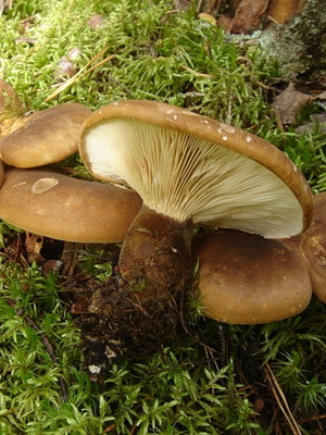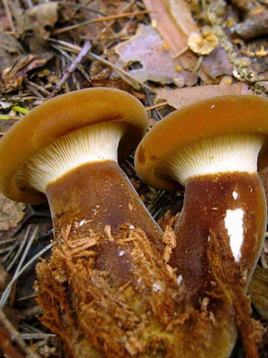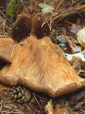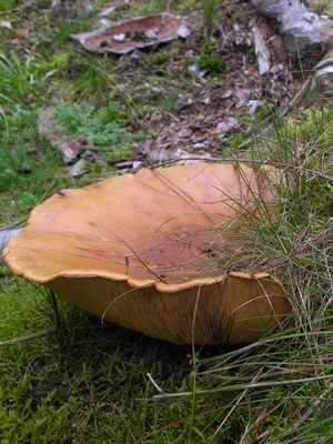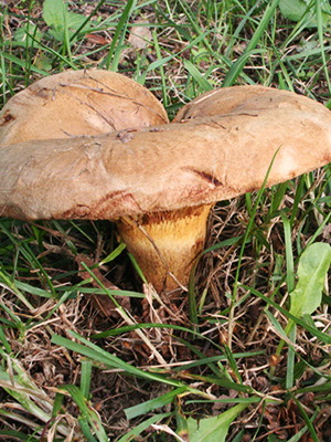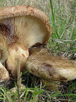Regardez la photo d'un gros porc: la coiffe du champignon est brunâtre ou foncé, ou enfin jaune brun, devenant ensuite souvent jaunâtre pâle, mais comme sa surface est toujours douce, légèrement humide et finement recouverte de duvet, elle a un aspect velouté . Les plaques de différentes longueurs sont épaisses, fortes, blanchâtres et parfois brunâtres, assorties à la couleur du chapeau. Le jus qui y est contenu et dans la chair d'un chapeau est blanc et a un goût sucré dans la jeunesse, amer dans la vieillesse. Jambe d’une hauteur de 1 à 4 cm, parfois attachée au côté de la casquette, charnue, dense, fragile, brun clair ou jaune sale, assez épaisse et souvent creusée.