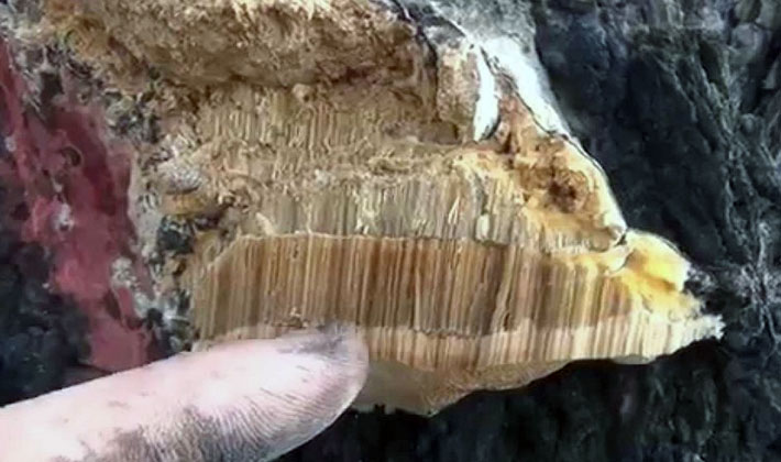 La chair est semblable à du liège ou ligneuse, dure, brun foncé ou marron.