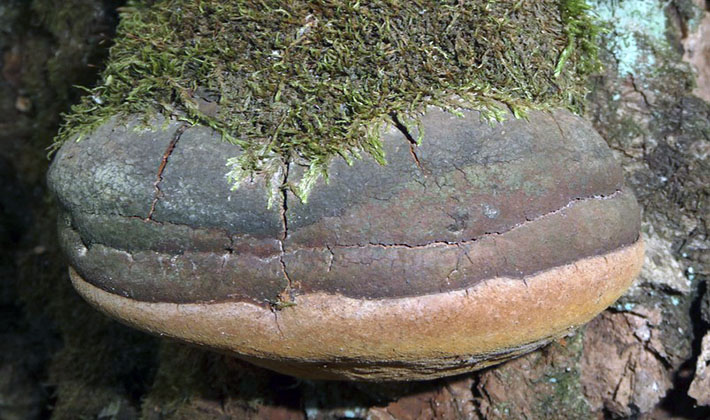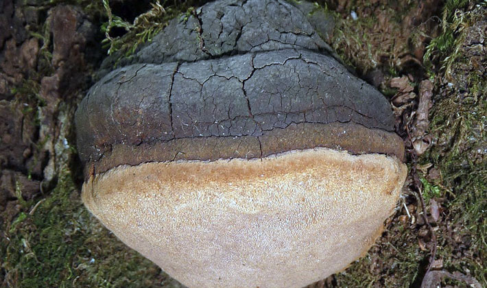 Les fructifications de ce champignon vivifère ressemblent à des premiers hémisphères, puis à des pieds ressemblant à des sabots, assis latéralement sur du bois. La taille des corps fruitiers varie de 5 à 30 cm et l'épaisseur de 2 à 12 cm. Une propriété distinctive de l'espèce est un corps fruitier de la forme d'un sabot avec deux zones. La partie supérieure consiste en une croûte presque noire ou gris foncé, se fissurant avec le temps et sur laquelle la mousse ou d'autres plantes peuvent se développer. La deuxième partie a une zone concentrique brun noirâtre. Les bords sont épais.