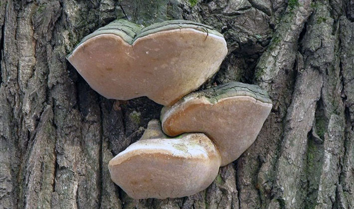 Vues similaires. Le faux mycète peut être confondu avec l’ancien myocarde (Fomitopsis pinicola), qui diffère non pas en deux, mais en trois zones à la surface, il a toujours une zone concentrique rouge, semblable à une bordure rouge.