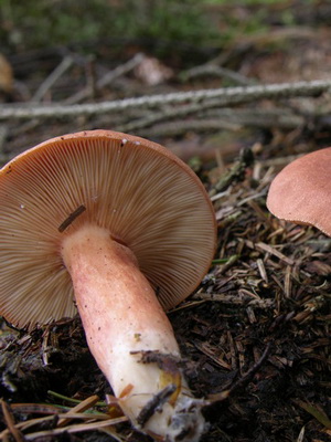 Doubles: le laiteux laiteux (Lactarius mitissimus), mais la pelure de son chapeau ne craque pas et le champignon lui-même est beaucoup plus petit.