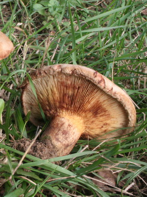 Records: se développer faiblement à la jambe ou complètement en retard. Changer la couleur du brun clair au brun foncé, en fonction de l'âge du champignon.