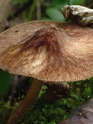 Jambe (hauteur 4-11 cm): blanc grisâtre ou brunâtre, avec de petites écailles sur toute la longueur. Il a une forme cylindrique, se rétrécit de bas en haut. Solide et très dense.