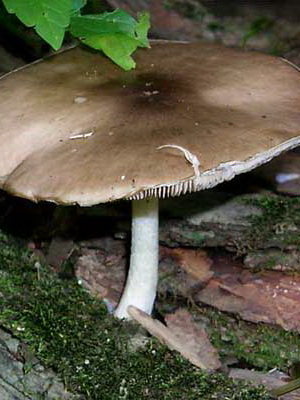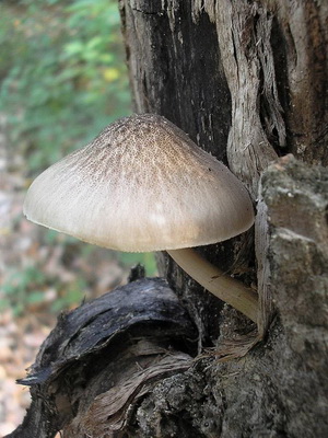 Chapeau Pluteus pluteus ephebeus) (diamètre 3-10 cm): grisâtre ou brun, à petites écailles, très charnu, souvent recouvert de fissures radiales. Chez un jeune champignon, il est convexe, puis il devient prostré ou avec des bords incurvés vers le haut, avec un petit tubercule au centre.