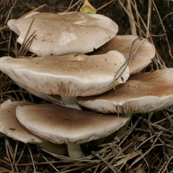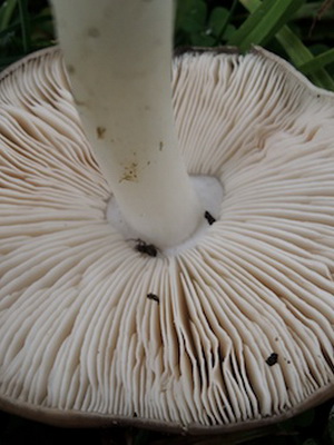 Records: vieux champignons libres, blancs ou légèrement jaunâtres peuvent avoir une teinte rosâtre.