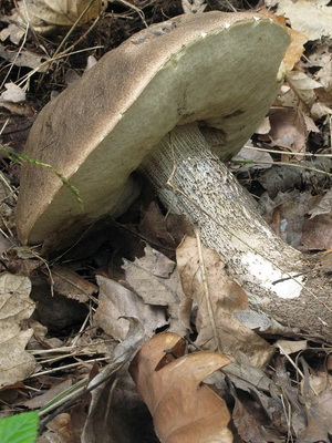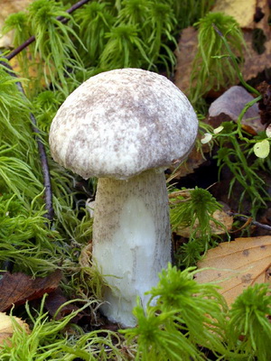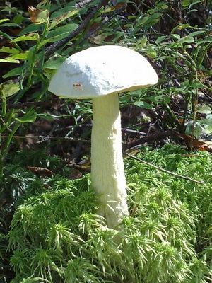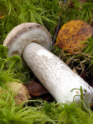Selon la description, la cuisse du boletus boletus ressemble à une nuit ordinaire - sa hauteur est de 4 à 12 cm, blanche ou gris clair.