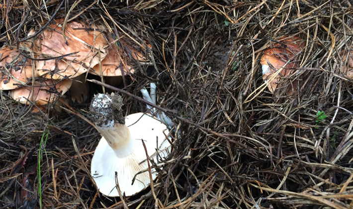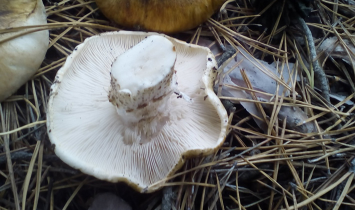 Similarités et différences: la rangée blanc-brun est semblable à la rangée de fibreuse-squameuse, mais cette dernière se distingue par une calotte écailleuse complète, une matité et un manque de collant par temps pluvieux.