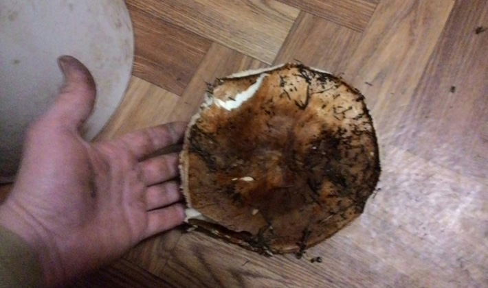 Pâte: blanche avec une teinte brune, dense, sans odeur, a une légère amertume. Certaines sources disent que le champignon a une odeur de poudre.