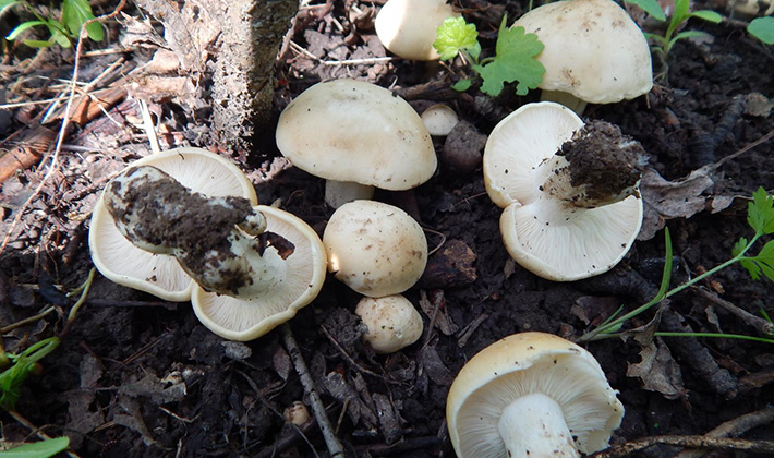 On sait que la ligne blanche toxique a la même couleur que May. Cependant, il commence à porter ses fruits à la fin du mois d’août et se poursuit jusqu’au premier gel. L'odeur de ce champignon est très désagréable et forte, rappelant celle de la moisissure. Comparez la photo montrant la rangée de champignons de mai et la rangée de blancs in vivo.