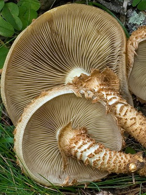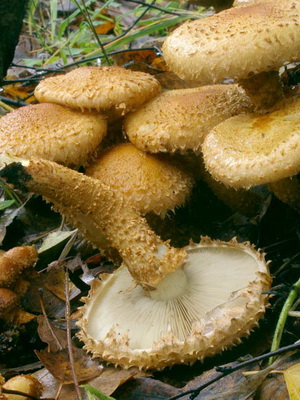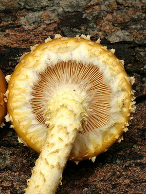 Jambe (hauteur 7-13 cm): dense, continu, de forme cylindrique, avec des écailles sur toute la longueur et un anneau écailleux. Habituellement la même couleur avec la peau d'un chapeau.