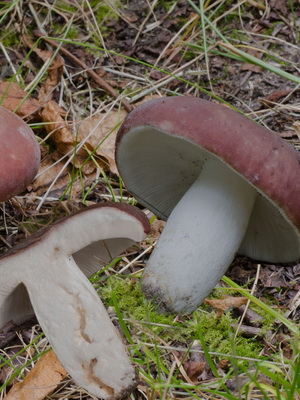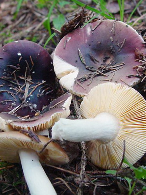 Doubles: Russula noire (Russula adusta), dans laquelle les plaques et la chair fréquentes ne rougissent pas à l'emplacement de la coupe.