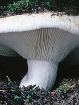 Jambe (hauteur 5-11 cm): dense, continu, souvent plissé, cylindrique, blanc ou gris.