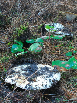 Si vous regardez attentivement la photo de la Russula est verdâtre, vous pouvez voir de petites écailles à la base de la jambe.