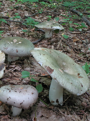 Doubles: représentants verdâtres champignon pâle (Amanita phalloides), diffèrent de russula en ce qu'ils ont un anneau sur la jambe et Volvo.
