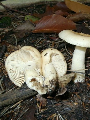 Records: rare et épais, étroitement attaché à la jambe. D'abord blanc, progressivement noirci.