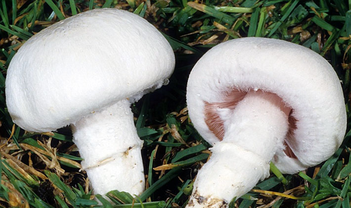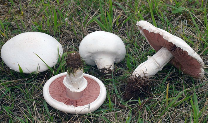 Vues similaires. L'élégant champignon forestier est semblable au champignon commun comestible (Agaricus campester), dans lequel la pulpe sur la coupe devient lentement rouge et il n'y a pas de plaques roses chez les jeunes spécimens.
