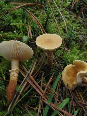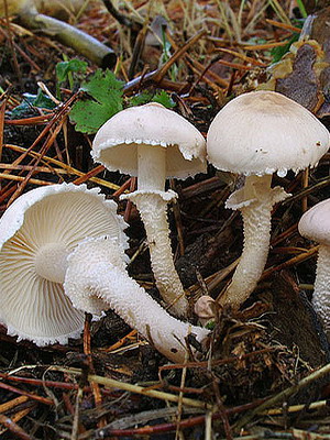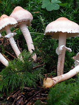Records: fermement pousser à la jambe. Les champignons blancs dans les jeunes champignons s'assombrissent avec l'âge.