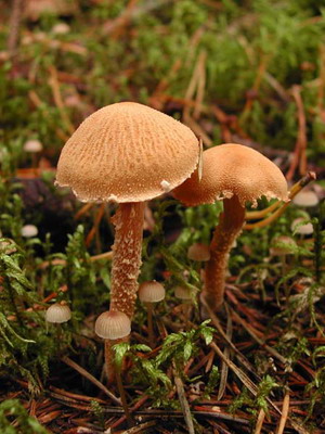 Chapeau (diamètre 2-7 cm): rouge, brune ou jaunâtre, avec un tubercule central et souvent avec les restes du couvre-lit. Chez les jeunes champignons, il a la forme d'une cloche et, avec le temps, il devient presque plat ou légèrement convexe, avec des rides ou des petits plis. Les bords sont généralement pliés vers l'intérieur.
