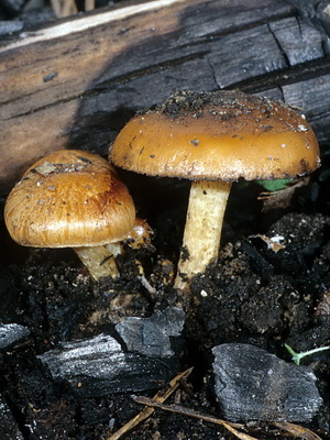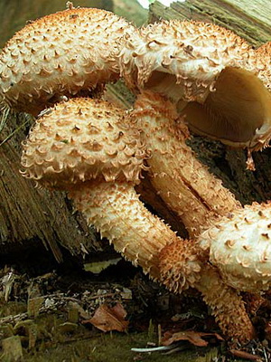 Jambe: longueur de 6 à 12 cm, diamètre de 1 à 2 cm.Une couleur jaune-brun dense avec des écailles brunâtres. La jambe est encadrée par un anneau fibreux; cependant, à mesure que le champignon se développe, l'anneau disparaît.