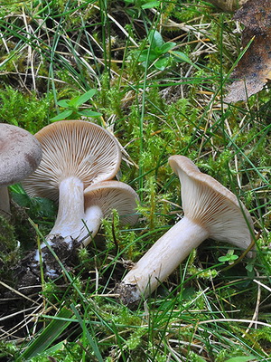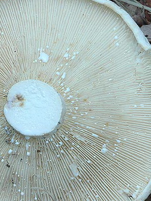 Records: fréquente, rose pâle. Les vieux champignons peuvent être presque bruns.