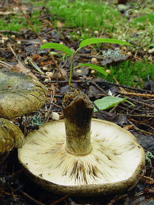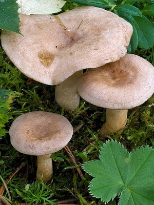 Doubles:champignons parcheminés (Lactarius pergamenus) et bleutés (Lactarius glaucescens), joueur de violon (Lactarius vellereus). La poitrine de parchemin a une jambe plus longue et des rides caractéristiques sur le chapeau. Le jus laiteux du bleuâtre devient verdâtre une fois séché. Et le violoniste a une légère peluche sur le chapeau.