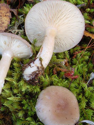 Records: fréquente, avec une teinte blanchâtre, descendant le long de la jambe.Lorsqu'ils sont pressés ou endommagés, ils deviennent gris.