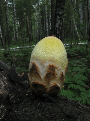 Il a la forme d'un cylindre et à la base est un tubercule. Le jeune champignon se sent touché au toucher, avec le temps il devient lisse.