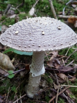 Chapeau Amanita Wittadini (Amanita vittadinii) (diamètre 5-18 cm) blanc, olive ou marron clair, avec des bords inégaux et côtelés. Souvent recouvert de petites écailles et de verrues. Comme la plupart des Amanitov, il change de forme au cours de la vie du champignon, passant de ouvert ou en forme de cloche à presque plat.