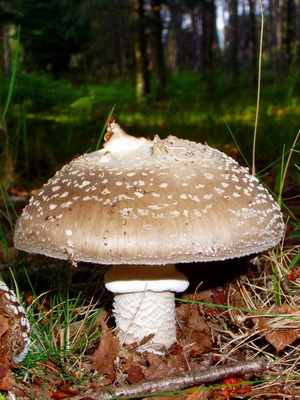 Faites attention à la photo du champignon agaric de mouche: cela ressemble à un grèbe pâle (Amanita phalloides) et à un agaric de mouche grise (Amanita porphyria). Le grèbe pâle, contrairement à l'agaric de mouche, ne sent pas et a un chapeau lisse sans flocons ni excroissances. Et l'agaric de mouche grise a un chapeau plus foncé que le grèbe.