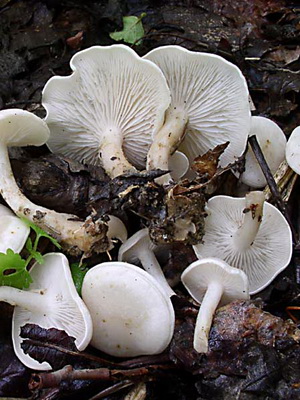 Doubles:autres bavards toxiques, par exemple le rougeâtre (Clitocybe rivulosa) et le cireux (Clitocybe cerussata), ainsi que les champignons comestibles - miel d'agaric (Marasmius oreades) et cerise (Clitopilus prunulus). La couleur blanchâtre diffère de la couleur rougeâtre. Waxy plus grand. La forte odeur poudreuse persistante est caractéristique de la cerise, et le miel de prairie, que l’on trouve souvent à proximité, dégage une odeur d’amande et d’un chapeau brunâtre à plaques lâches.