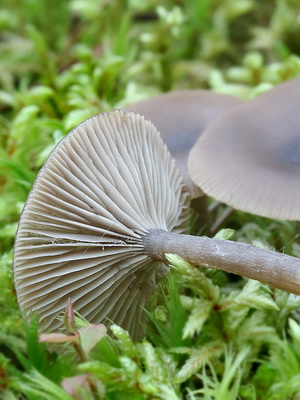 Jambe (hauteur 2-5 cm): matte, fibreuse, cylindrique. Il est lisse, parfois avec une légère pubescence. La couleur est généralement beige clair, légèrement plus claire que le chapeau, s'assombrit nettement à la base du vieux champignon. Dans un environnement humide, l'ombre s'intensifie.