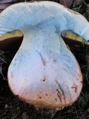 Pulpe: dans une jambe avec une teinte rouge, et dans un chapeau blanc. Devient bleu en coupant et en interagissant avec l'air, puis devient rouge.