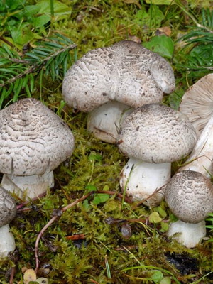 La rangée comestible de gris terrestre ressemble à une rangée de tigres. Cependant, elle a un chapeau fragile d'un diamètre allant jusqu'à 7 cm, gris. La jambe est presque blanche, ne possède pas de jupe.
